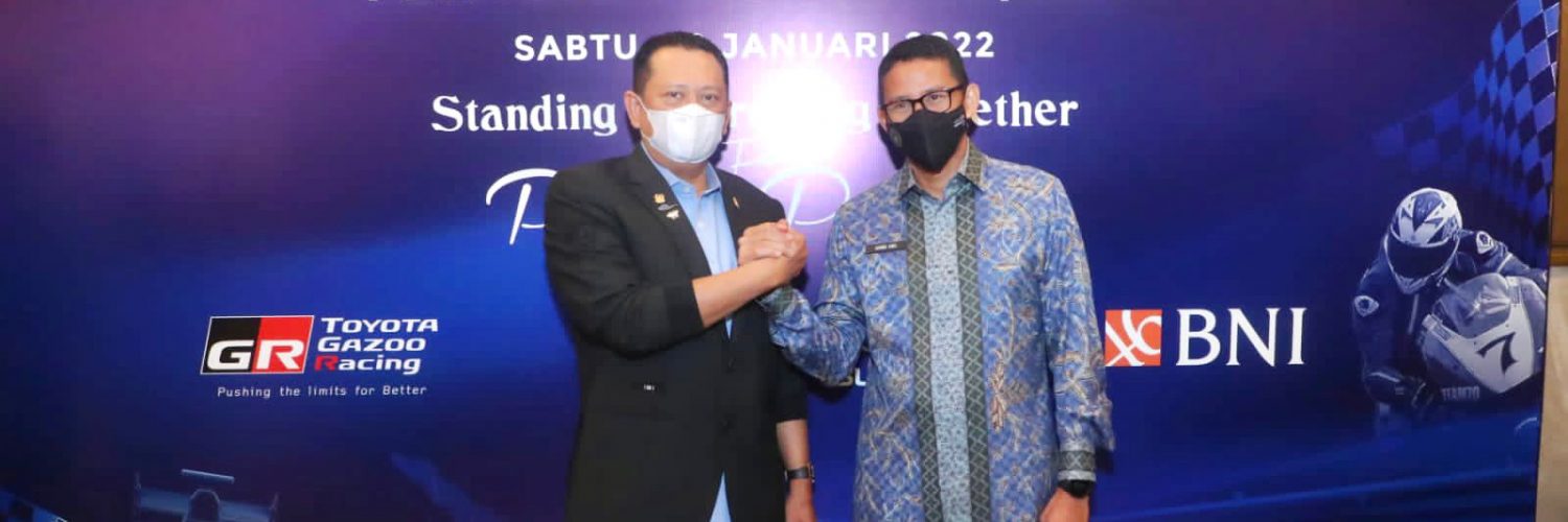 INDONESIANEWS.TV, JAKARTA: Ketua MPR RI sekaligus Ketua Umum Ikatan Motor Indonesia (IMI) Bambang Soesatyo bersama Menteri Pariwisata dan Ekonomi Kreatif Sandiaga Uno menandatangani Nota Kesepahaman (MoU) tentang Pengembangan Pariwisata dan Ekonomi Kreatif Melalui Kegiatan Olahraga dan Mobilitas Otomotif Indonesia. Bertujuan untuk mengembangkan wisata otomotif yang secara bersamaan turut mengembangkan citra pariwisata Indonesia, sekaligus mengembangkan ekonomi kreatif melalui berbagai kegiatan olahraga dan mobilitas otomotif.