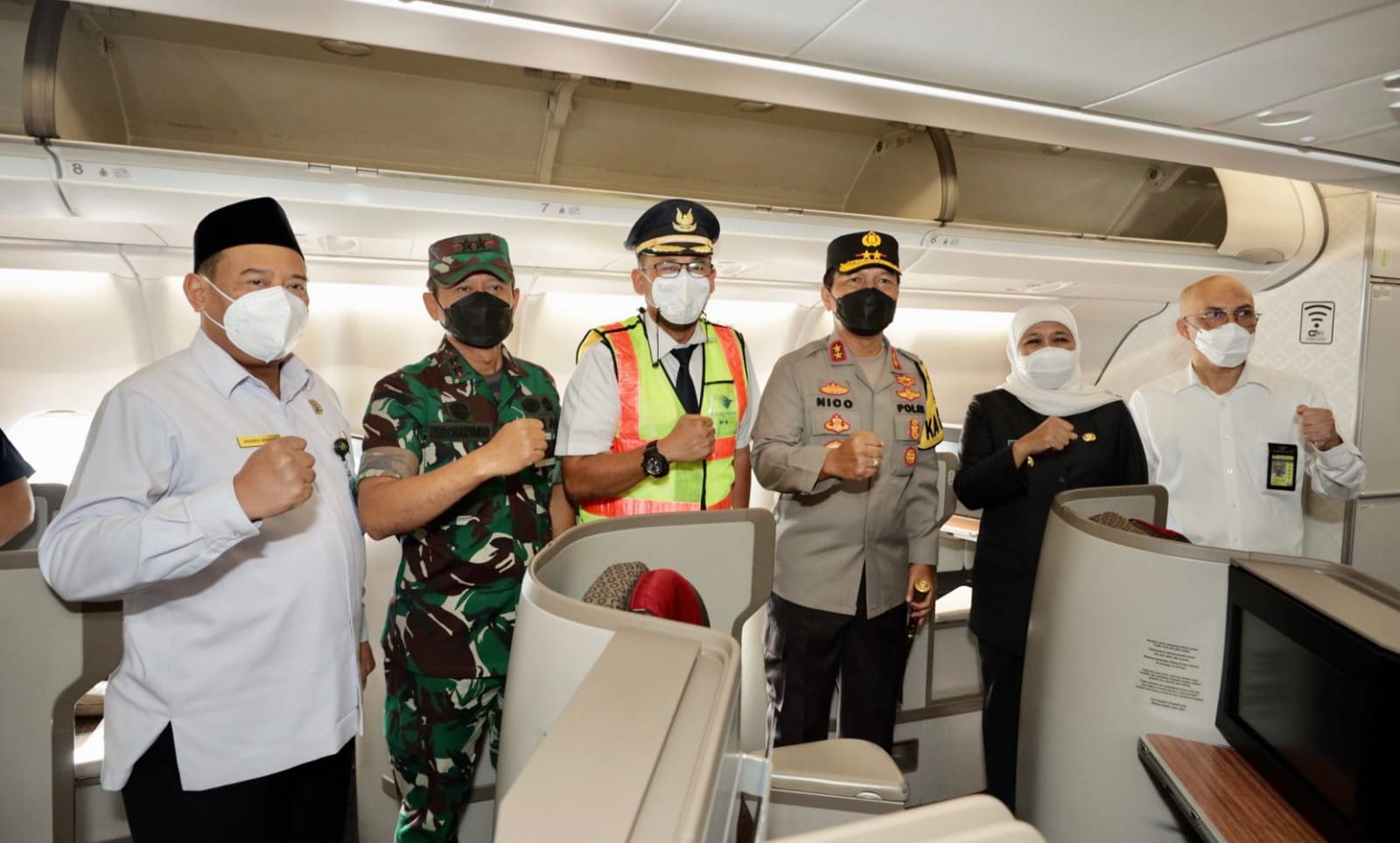 Gubernur Jawa Timur Khofifah Indar Parawansa, Pangdam V Brawijaya Mayjend TNI Nurchahyanto, Kapolda Jatim Irjen Pol Nico Afinta, Danlanudal Juanda, Kakanwil Kemenag Jatim, pejabat utama Kodam V Brawijaya, pejabat utama polda jatim, Kapolresta Sidoarjo, Direktur Teknik Garuda Indonesia serta Koordinator Himpunan Penyelenggara Umrah dan Haji Khusus (Himpuh) Jatim, Bali dan NTB secara resmi melepas jamaah umroh dan sekaligus membuka penerbangan jamaah umroh melalui Bandara Internasional Juanda.