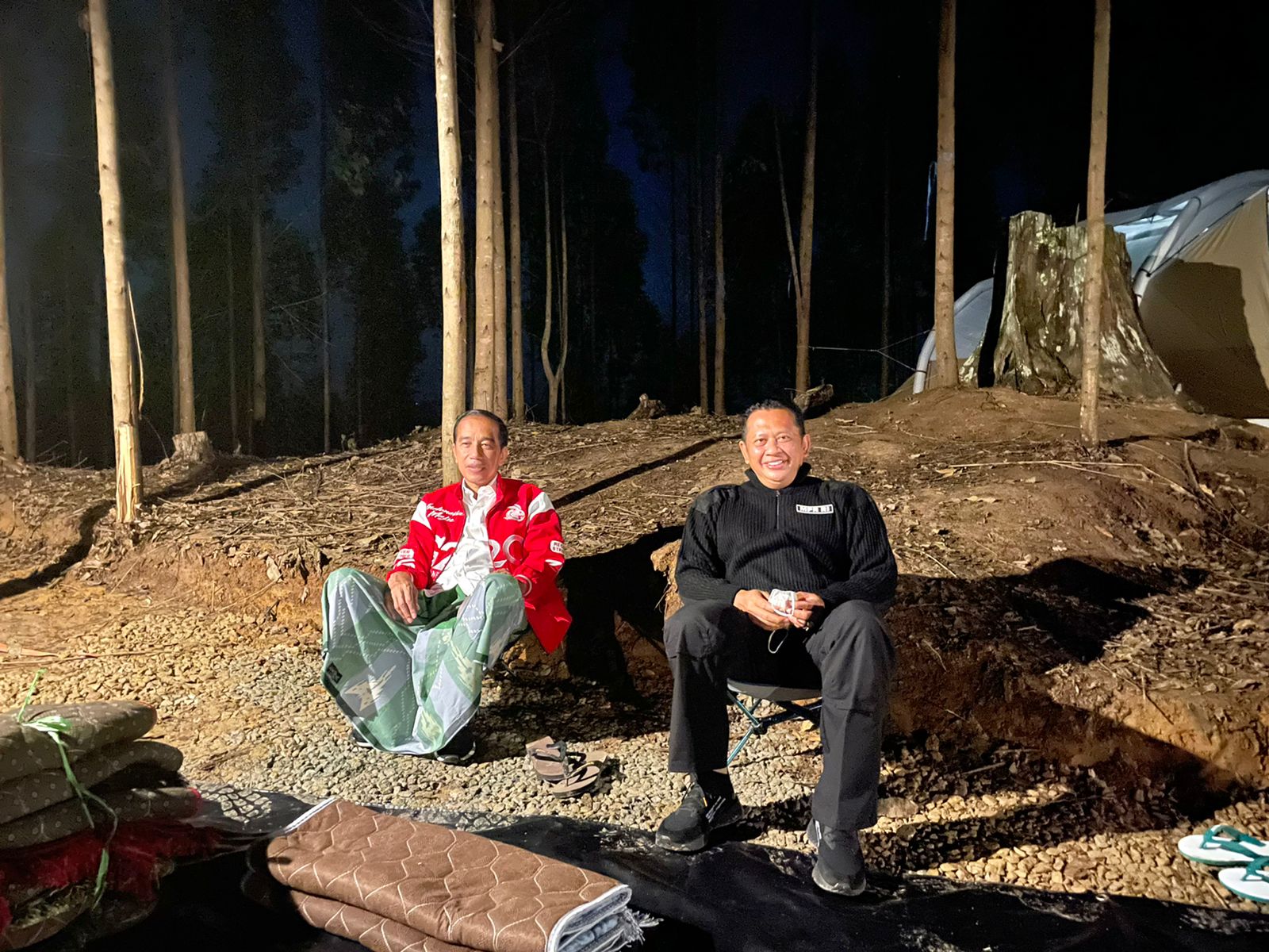 “Saya dan Presiden Jokowi melakukan pembicaraan ringan. Kemudian, satu per satu menteri yang ikut berkemah di IKN keluar dari tenda masing-masing saat mendengar saya dan Presiden berbincang. Presiden Jokowi sempat berkelakar melihat Pak Basuki Hadimuljono masih mengenakan pakaian kerja. Pak Basuki malam-malam masih bekerja saja, begitu canda Presiden,” urai Bamsoet.