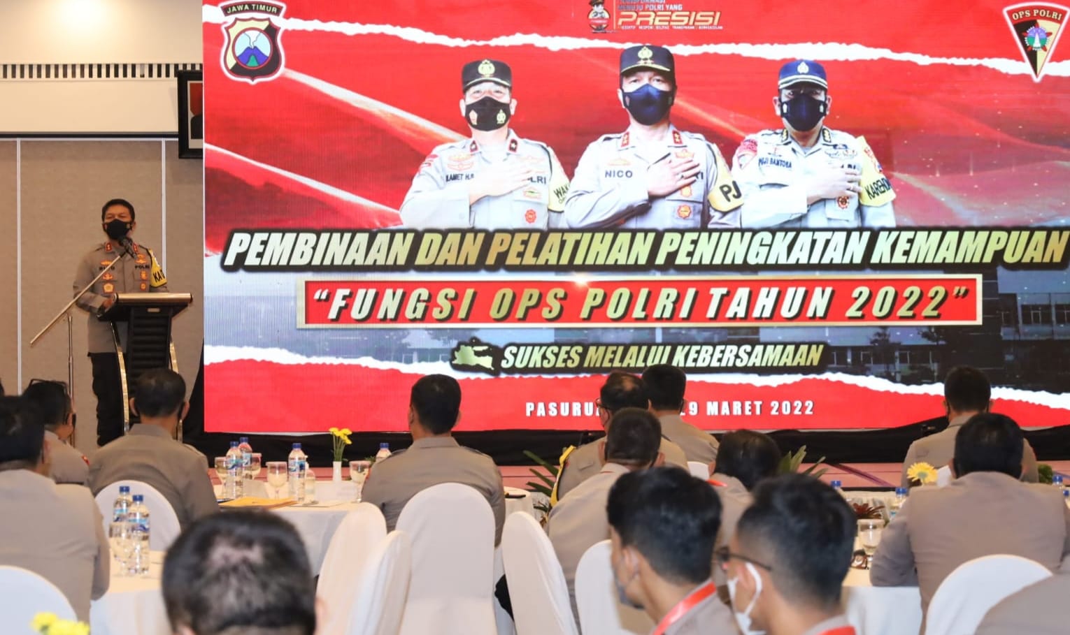 INDONESIANEWS.TV – PASURUAN: Kapolda Jatim Irjen Pol Nico Afinta, memberikan pengarahan sekaligus membuka kegiatan pembinaan dan pelatihan peningkatan kemampuan Operator Fungsi Operasional Jajaran Polda Jatim Tahun 2022, di salah satu Hotel kawasan Prigen, Pasuruan, Senin (28/3/2022).