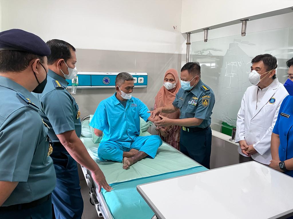 “Ini musibah bagi kita semua. Kejadian ini, tidak ada yang menginginkan. Saya doakan, semoga segera diberi kesembuhan. Penanganan akan terus dilakukan di RSAL hingga benar-benar sembuh, ” ujar Laksamana TNI Yudo Margono.