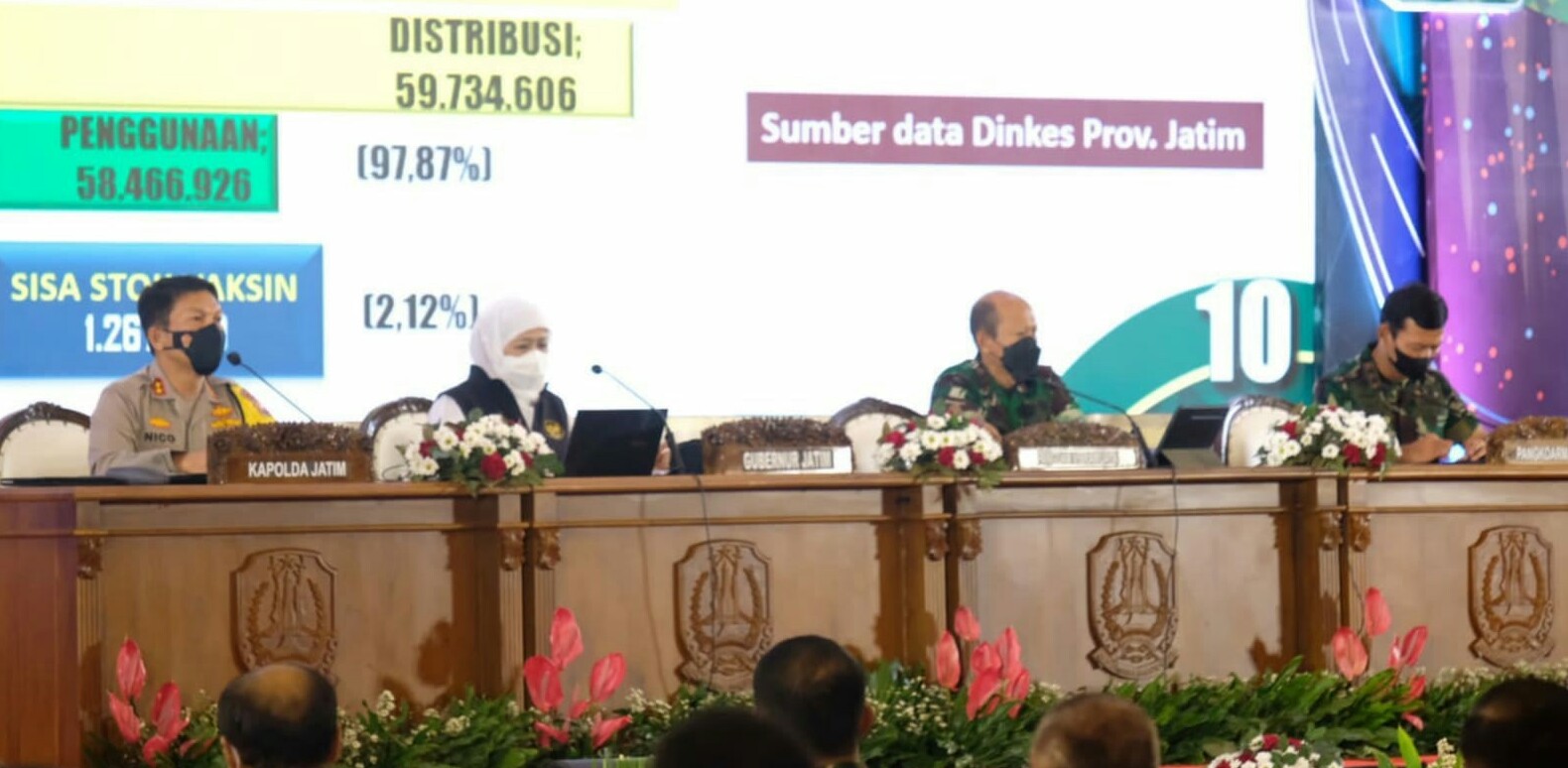 Terakhir arahan dari Gubernur Jatim Khofifah Indar Parawansa, dalam arahannya Gubernur menyampaikan kesiapsiagaan harus lebih ditingkatkan terkait pengecekan vaksinasi yang sudah diterima oleh masyarakat.