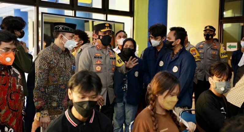 INDONESIANEWS.TV – SURABAYA: Polda Jawa Timur berkolaborasi dengan Badan Eksekutif Mahasiswa (BEM) Universitas Airlangga Surabaya. Menggelar vaksinasi bagi mahasiswa dengan target 1.700 dosis.