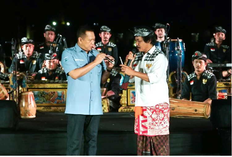 INDONESIANEWS.TV, BALI: Ketua MPR sekaligus Wakil Ketua Umum Partai Golkar Bambang Soesatyo memfasilitasi pagelaran seni dan budaya sanggar Bona Alit pimpinan I Gusti Ngurah Adi Putra atau yang akrab disapa Gung Alit, seniman tradisi asal Bali. Pagelaran diselenggarakan di Black Stone Beach, Bali, Sabtu (28/5/2022). Gung Alit merupakan seniman tradisi Bali yang tidak saja mahir memainkan instrumen gamelan Bali, alat gesek, hingga perkusi. Melainkan juga pembuat ragam instrumen yang dimodifikasi ke dalam beragam bentuk. Misalnya, seruling raksasa, alat musik gesek China Eh Ru, hingga alat gesek China yang digabung dengan alat gesek tradisi India dan Indonesia.