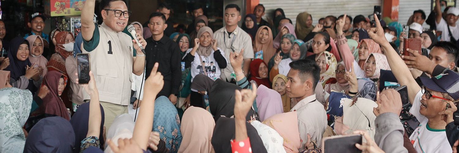 GRESIK: Dalam lawatannya di Kabupaten Gresik, Jawa Timur, Calon Wakil Presiden (Cawapres), Muhaimin Iskandar atau Gus Imin meninjau harga bahan makanan pokok di Pasar Menganti, Gresik, Jumat (29/12/2023).