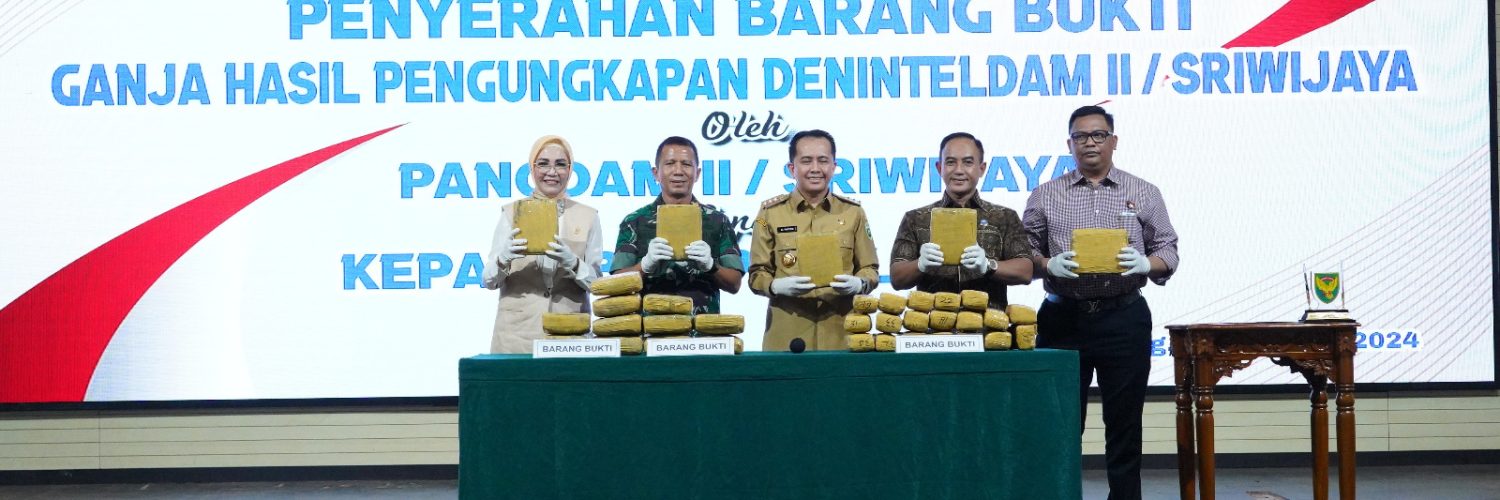 “Disaksikan Pj. Gubernur, Ketua DPRD, Kajati dan Kabinda Sumsel, barang bukti hasil pengungkapan tim Denintel II/Swj itu diserahkan oleh Pangdam kepada Kepala BNN Prov Sumsel (Brigjen. Pol. Djoko Prihadi, S.H.,M.H),” ujar Kol Arh Sapta.