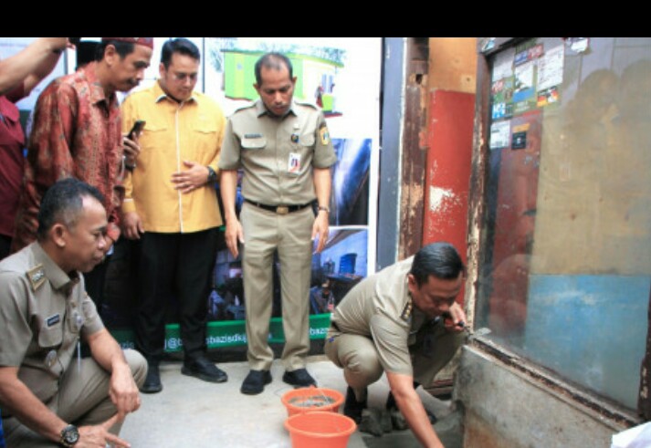 Peletakan batu pertama dilaksanakan oleh Walikota Administrasi Jakarta Selatan Munjirin, di damping Asisrten Kesra Said Ali dan Koordinator Baznas Basis Jakarta Selatan Ahmad Kahpi.